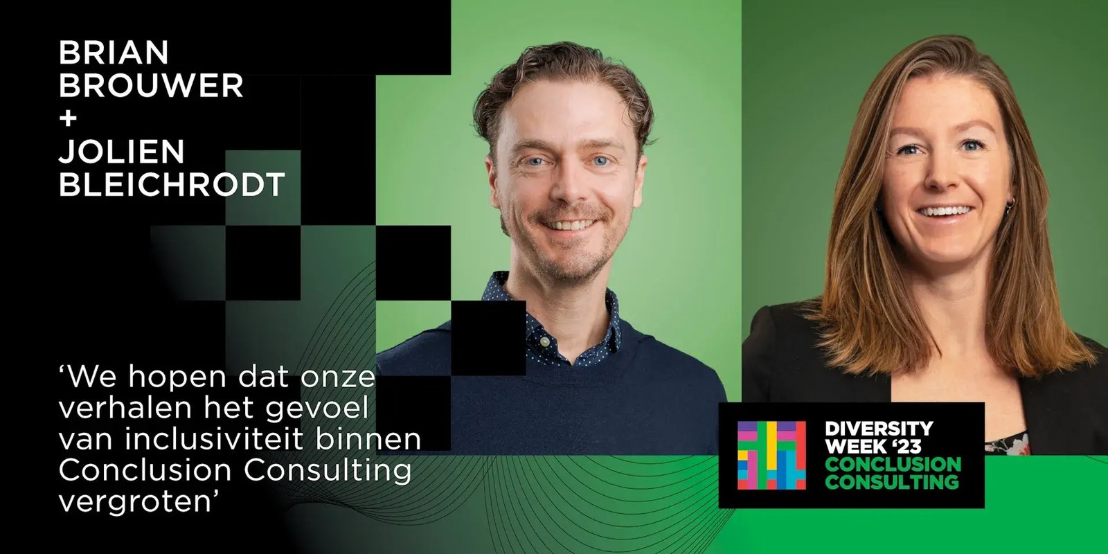 Op 3 oktober was het Diversity Day. Deze nationale feestdag is hét moment om aandacht te besteden aan diversiteit, gelijkwaardigheid en inclusie door met elkaar in gesprek te gaan en ervaringen te delen. Binnen Conclusion Consulting vinden we: verschil mag er niet alleen zijn, het moet er zijn. Tijdens onze eigen Diversity Week vierden we deze verschillen op initiatief van Brian Brouwer en Jolien Bleichrodt door meerdere thema’s binnen het diversiteitsspectrum bespreekbaar te maken. Daarvoor delen zij ook zelf hun verhaal.