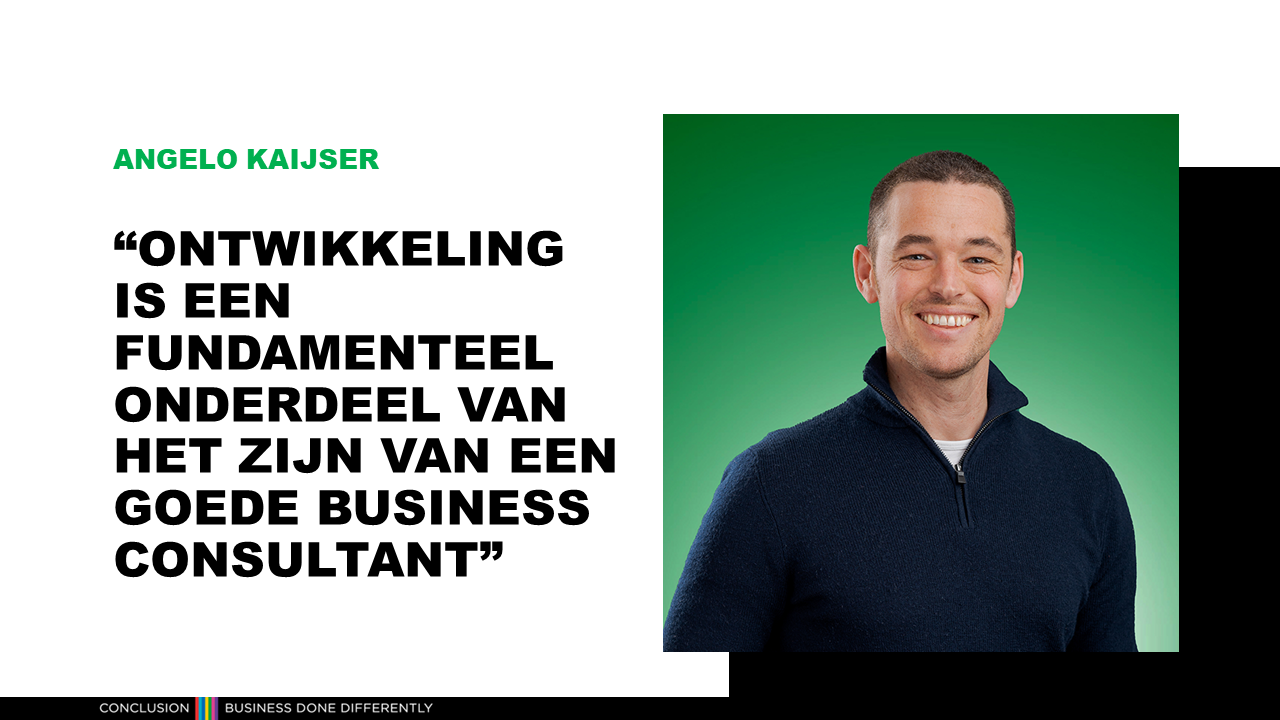 Ontwikkeling speelt een centrale rol binnen Conclusion Consulting. “Hoe meer aandacht je geeft aan je persoonlijke ontwikkeling, hoe succesvoller je kunt zijn bij de klant en voor ons bedrijf”, zegt Angelo Kaijser. Vanuit zijn perspectief als Managing Consultant van het team Prestatieverbetering deelt hij zijn visie op persoonlijke en teamontwikkeling.
